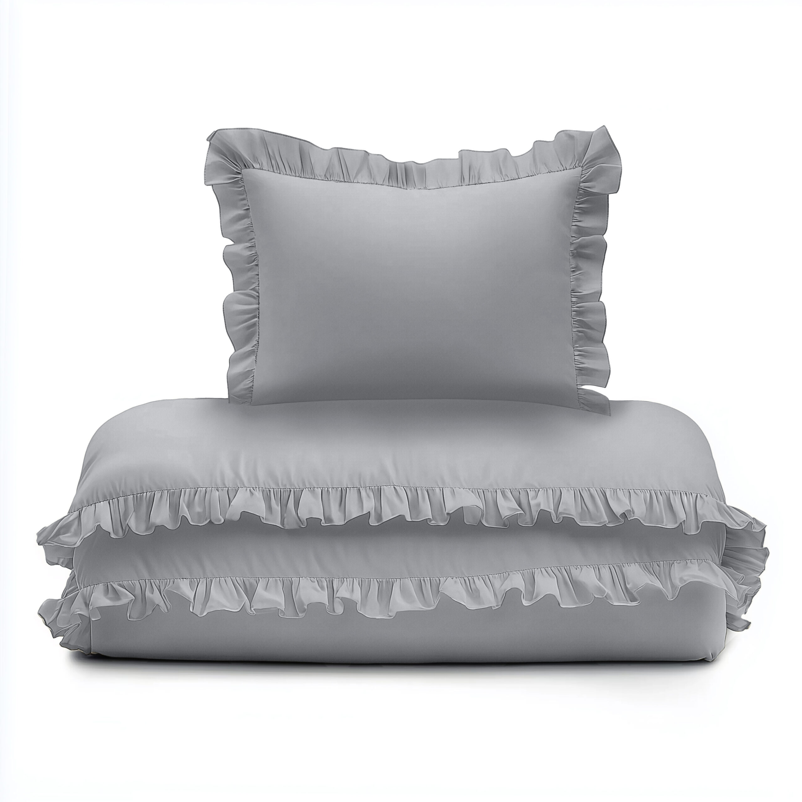 Elegancka pościel z ozdobną falbaną, uszyta z wysokiej klasy bawełny. Miękka i jednocześnie bardzo trwała, idealna na co dzień. Naturalne delikatne zagniecenia i kolory w stylu boho stworzą w sypialni atmosferę spokoju i subtelnej elegancji. Enzymatycznie opierana bawełna jest miękka i przyjemna, ma subtelny matowy wygląd. Lekkie, naturalne zagniecenia sprawiają, że wygląda pięknie bez prasowania.